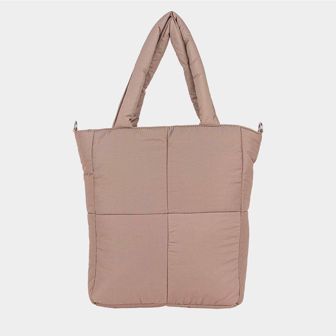 Bolso de tejido acolchado fabricado con materiales de calidad, con suficiente espacio para los artículos esenciales que necesitas junto a ti.