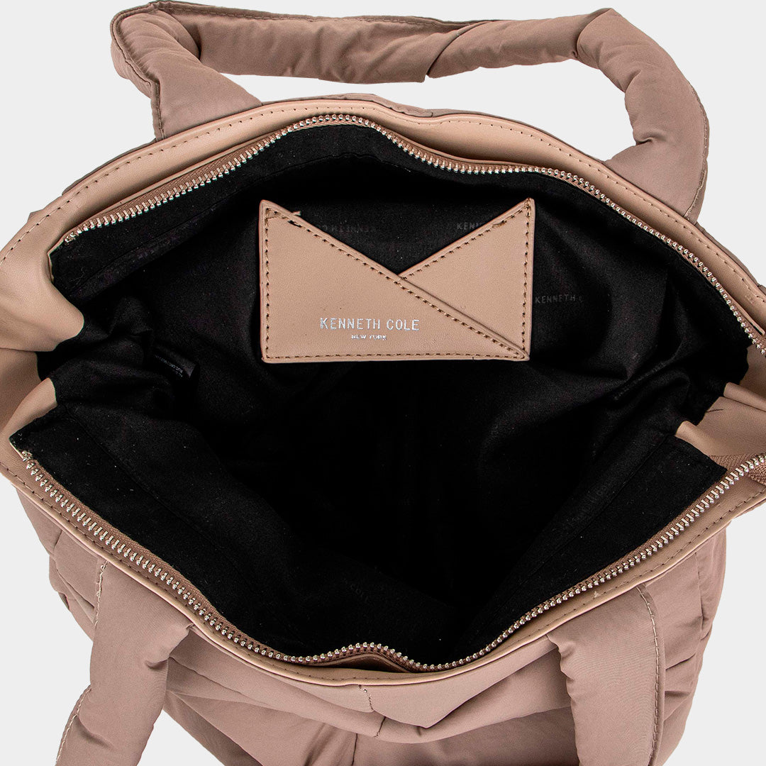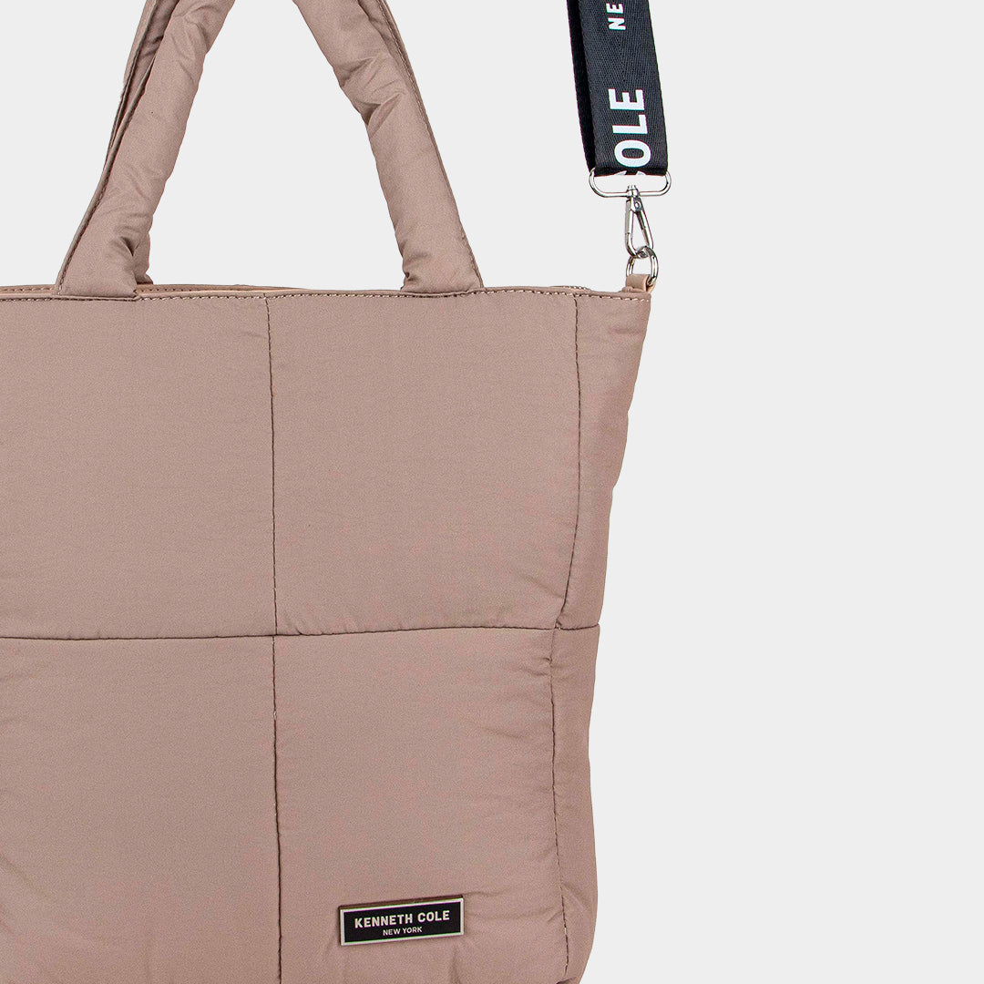 - Multifuncional cuenta con asas de mano y asa bandolera en contraste, logotipada KC, ajustable y extraíble; que permite llevarla en la mano, hombro o cruzada.